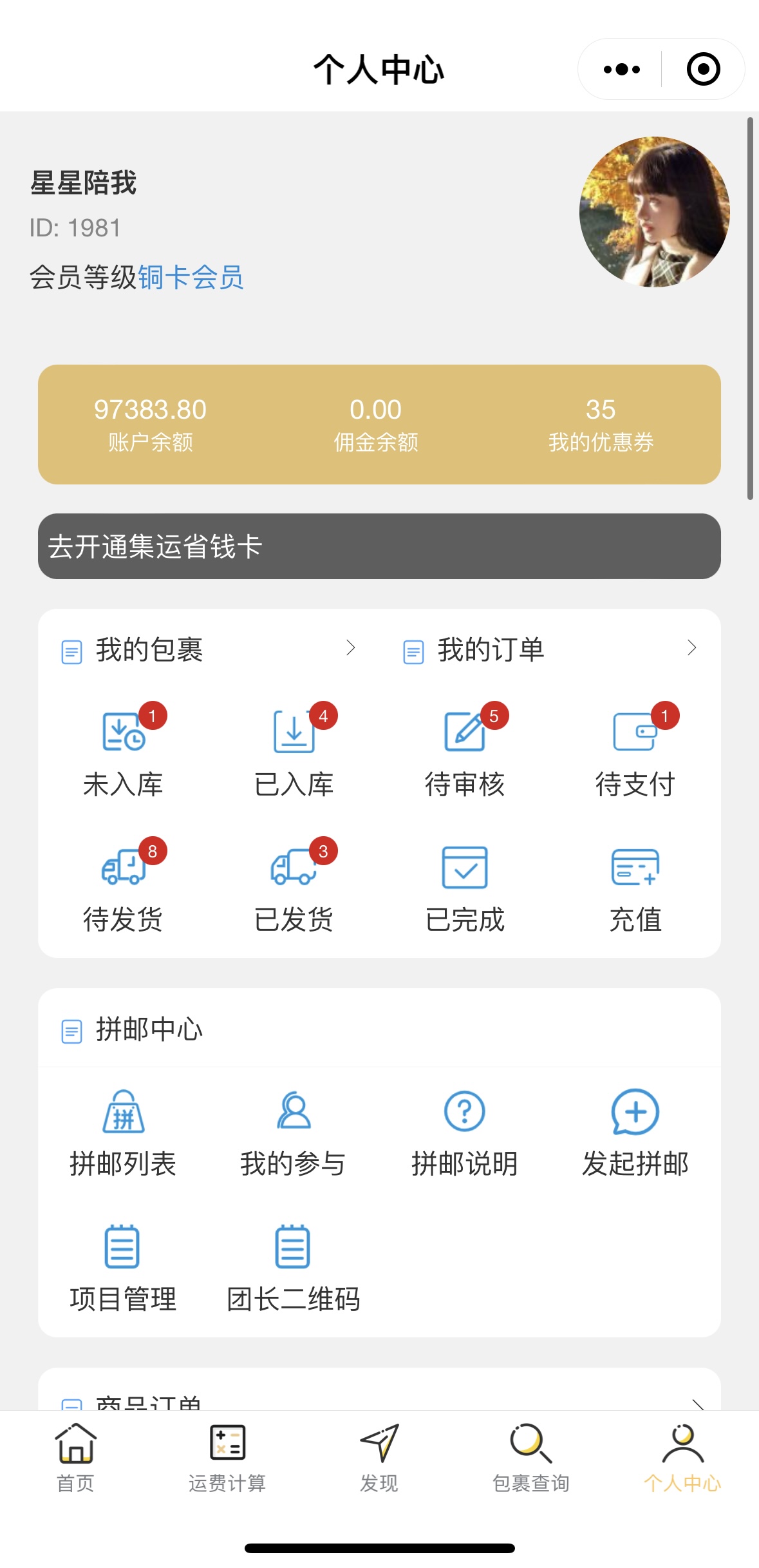 嗨轉(zhuǎn)寶集運(yùn)小程序清晰明了的訂單管理系統(tǒng):待打包、待支付、待發(fā)貨、貨到付款、已發(fā)貨一目了然